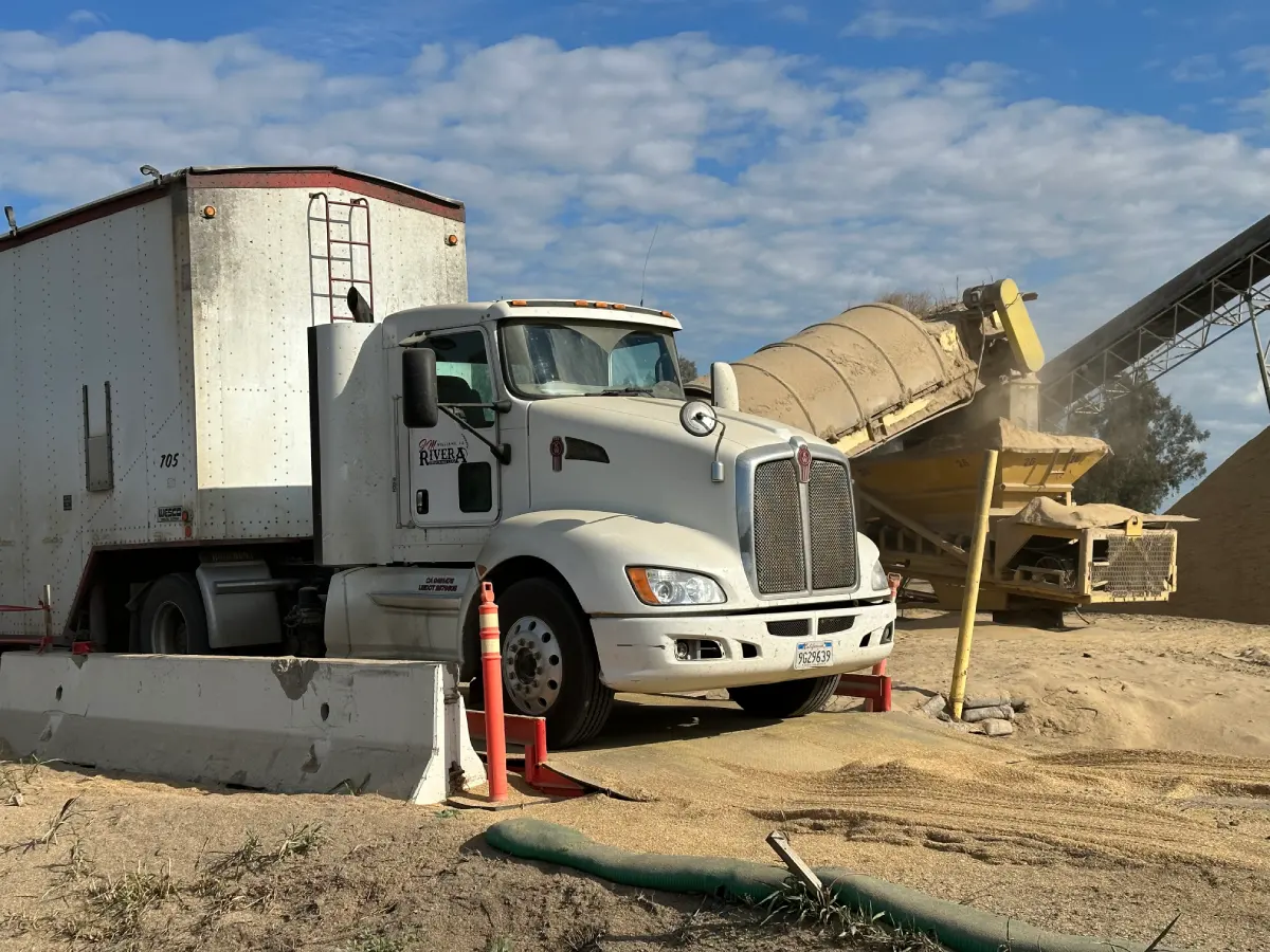 Rice hulls from the Sacramento Valley’s paddies is delivered to the plant by trucks. It undergoes initial inspection for quality and contaminants before being accepted.