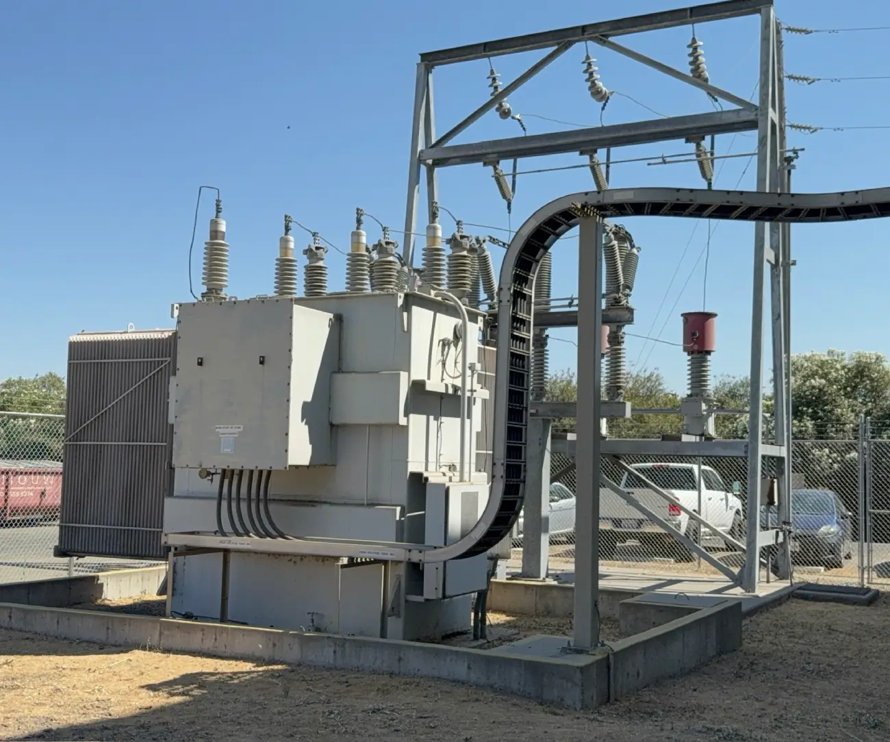 The generated energy is reduced in voltage and feeds our on-site equipment. The remaining power gets passed through our high voltage transformers, sending >60kV onto the local grid.